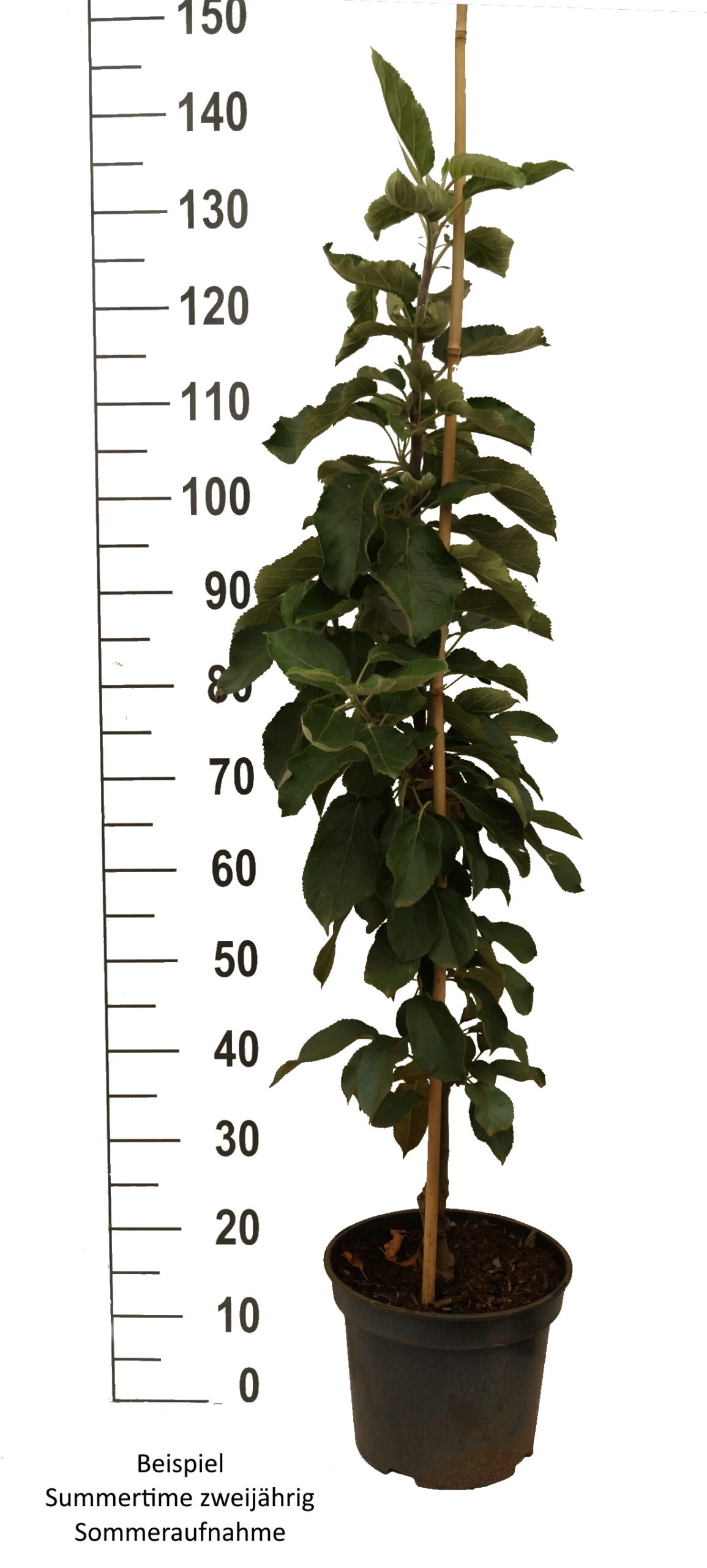 Aufgrund der Wuchseigenschaften können Säulenäpfel problemlos im Kübel auf der Terrasse oder dem Balkon kultiviert werden. `Summertime´ ist eine robuste Sorte mit hoher Blattgesundheit.